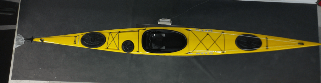 Det finns just nu ingen färgläggningsfunktion som gäller för havskajak. Men tänk så här när du leker runt och kollar vilken färgkombo du vill ha: välj fittnesboats och färglägg med en färg i botten och en färg i toppen. Mitt på båten löper ett gummiskydd runt om skrovet. Det kan du också färglägga. Använd ”lines top deck” så får du en uppfattning om hur det kommer att se ut. Diskutera gärna dina ideer.